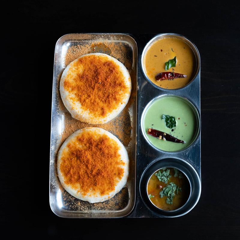 Served with sambar (a lentil and vegetable stew) and a variety of chutneys.Add Ghee +1.99, Butter +1.99, Cheese +1.99, Podi +1.99, Onions +1.99